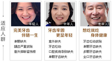 2.固定假牙:固定假牙分为烤瓷牙和种植牙两种,是修复牙列中一个或几个缺失牙的修复体。烤瓷牙是靠粘结剂或固定装置与缺牙两侧预备好的基牙连在一起,而种植牙则是种上人工牙根,从而恢复缺失牙的解剖形态与生理功能。固定假牙不能自行取戴,价格相比较活动假牙来说要贵一点。