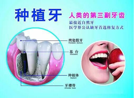 3、种植牙修复:是通过手术植入人工牙根来支持的假牙,要求缺牙患才身体一般情况较好,牙槽骨较厚,牙骨质好,与固定和活动牙相比,它不损伤邻牙,戴用后舒适、自然、美观、时间长久耐用等优点深受广大缺牙者的喜爱。