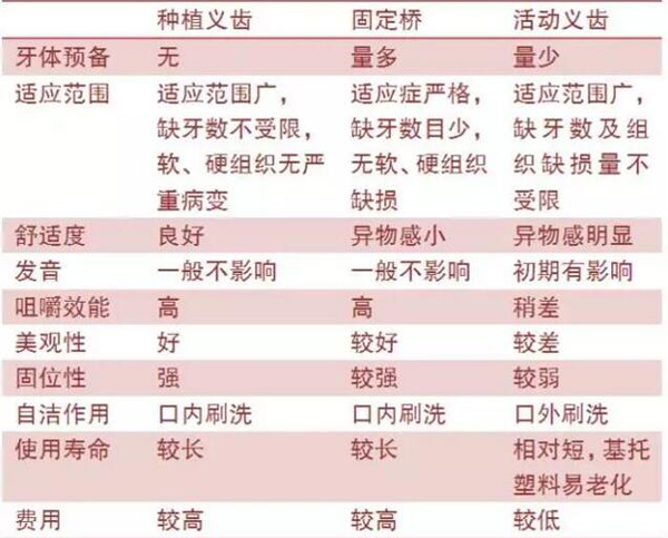 种植牙:在缺牙的地方用手术的方法将一颗预成的人工钛金属牙根植入牙槽骨内,然后在其基础上安装一颗种植牙。与固定牙和活动牙相比,种植牙不损伤邻牙,戴用后舒适、自然、美观,能够维持正常的牙槽骨,与天然牙有相近的咬合力,使用寿命长,种植牙价格一般上万元左右。